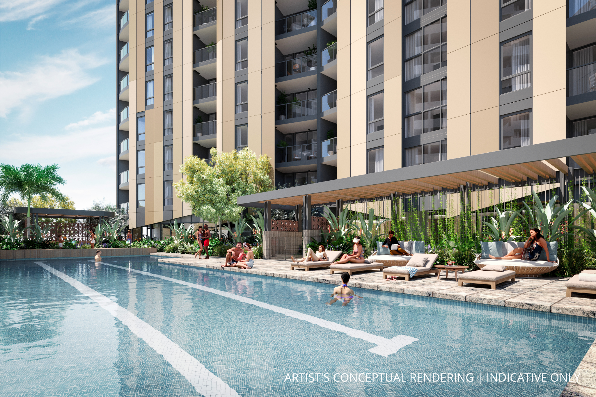 Residents will have access to premium amenities and communal spaces which will include a 25m lap pool with beach edge, podcast / music recording studios, BBQ pavilion, fully equipped gym, coworking facilities, outdoor spa retreat, dog wash facilities, yoga room, resident lounges and much more.